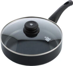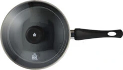Deze pan heeft een basisklasse bouwkwaliteit, waardoor hij eerder slijt en minder stevig is dan een midden- en topklasse pan.
