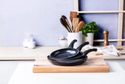 De pannen zijn geschikt voor alle warmtebronnen, inclusief inductie en gebruik in de oven tot aan 160 graden Celsius.
