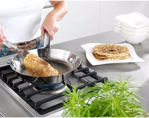 Door de rvs baklaag blijven ingrediënten snel kleven aan de pan.