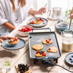Door het vermogen van 2.300 watt is de bakplaat snel opgewarmd.