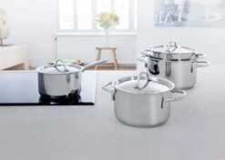De kookpannen zijn geschikt voor alle warmtebronnen, inclusief inductie en gebruik in de oven tot aan 230 graden Celsius.