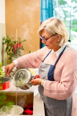 Met het afgietsysteem vergrendel je de deksel, zodat je hete vloeistoffen gemakkelijk en veilig afgiet.