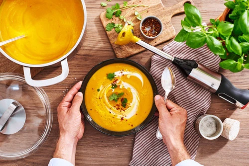 Dankzij het krachtige vermogen gebruik je de staafmixer ook voor harde ingrediënten en voor meerdere bereidingen achter elkaar.