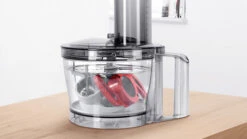 De Bosch MultiTalent 8 MC812B816 stelt voor elk accessoire automatisch de juiste snelheid in. Zo hoef je niet langer meer te twijfelen over de juiste snelheid voor de verwerking van je ingrediënten, dankzij de SmartToolDetection functie. De foodprocessor heeft een krachtige motor van 1.250 watt en een grote kom van 2,4 liter. Zo verwerkt de foodprocessor grote hoeveelheden en zware ingrediënten in een handomdraai. Het apparaat blijft tijdens de bereiding stevig staan dankzij de antislipvoetjes. Nadat je aan de slag bent geweest, is de machine gemakkelijk schoon te maken. Zo zijn alle accessoire vaatwasmachinebestendig. Je bergt alle accessoires op in de mengkom. Opgeruimd staat netjes.
