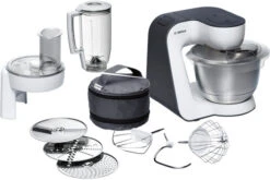 Antispat deksel, Blender opzetstuk, Foodprocessor opzetstuk, Garde, Kneedhaak, Opbergtas voor accessoires, Rasp opzetstuk |