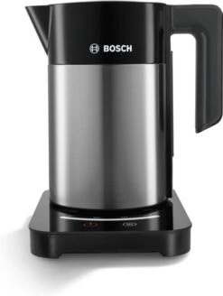 Met de Bosch TWK7203 TemperatureControl maak je jouw kopje groene thee op precies de juiste temperatuur. Deze waterkoker heeft namelijk 7 temperatuurstanden, tussen de 70 en 100 graden. De waterkoker staat stevig op de houder. Op diezelfde houder vind je ook de touchscreen knoppen waarmee je de waterkoker instelt. Na het koken, blijft het water nog tot 30 minuten lang op temperatuur. Handig, wanneer je toch onverhoopt nog even de was moet ophangen. Daarna schenk je alsnog, op precies de juiste temperatuur, het water voor jouw kopje witte thee in.
