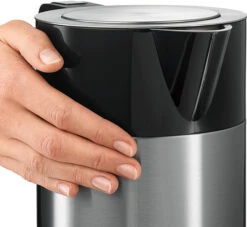 Dankzij de dubbelwandige behuizing blijft de buitenkant van de waterkoker koel.