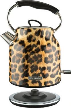 Met deze Bourgini Panter Waterkoker haal je een waterkoker in huis die door de panterprint extra opvalt. De inhoud van 1.7 liter is groot genoeg om 6 koppen thee gelijktijdig te zetten. De waterkoker is snoerloos en 360 graden beweegbaar. HIerdoor plaats je de kan gemakkelijk op de voet. Door de waterniveau indicator zie je precies hoeveel water in de waterkoker zit. Een droogkookbeveiliging zorgt dat de waterkoker niet opwarmt wanneer er geen water in zit. Als je de waterkoker niet gebruikt, schakelt deze automatisch uit.