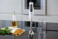 Met de Braun Multiquick MQ3137WH Sauce+ staafmixer pureer, mix, hak en klop je verschillende ingrediënten. De staafmixer heeft 11 standen en een turbostand. Met de antispat staafmixervoet pureer je zachte ingrediënten voor bijvoorbeeld soep, zonder te spetteren. Maak klontvrije aardappelpuree voor het hoofdgerecht met het pureeraccessoire. Voor het toetje vermaal je noten gemakkelijk in de hakmolen om de taart mee te versieren. Of klop slagroom stijf met de ballongarde voor op je chocolademelk. Na het gebruik reinig je de losse onderdelen gemakkelijk in de vaatwasmachine.