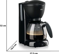 Met de Braun PurAroma Plus KF560/1 Zwart zet je een aromarijke filterkoffie. De doorlooptijd en watertemperatuur zijn namelijk zeer precies op elkaar afgestemd voor een volle koffiesmaak. Het Brita waterfiltersysteem voorkomt dat er kalkaanslag ontstaat in het koffieapparaat. Zo gaat niet alleen het apparaat langer mee, maar ook de koffiesmaak blijft zo goed. Met het waterreservoir met kopaanduiding bepaal je gemakkelijk voor hoeveel personen je koffie zet. Je hoeft niet bang te zijn voor onnodige energieverspilling, want de machine schakelt na 40 minuten automatisch uit.