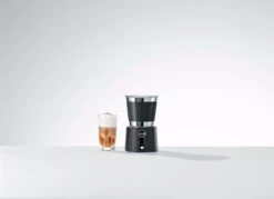Maak zowel koude als warme melkspecialiteiten met de JURA Automatische Melkopschuimer. Dankzij de ruime inhoud maak je zo’n 3 cappuccino’s tegelijk. Gebruik de opwarmfunctie om ’s winters te genieten van een grote kop warme chocolademelk. In de zomer geniet je van een heerlijke ijskoffie met de functie voor koud opschuimen. Je bedient de melkopschuimer gemakkelijk met één druk op de knop. De kunststof band die om de verchroomde melkbeker heen zit, zorgt voor een goede grip. Handig wanneer je het melkschuim in je kopje schenkt.
