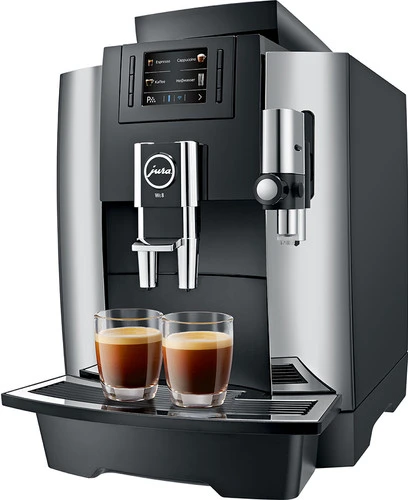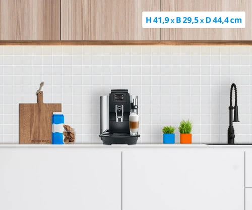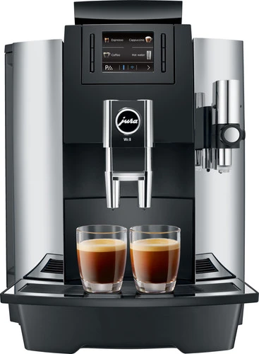 Met de JURA WE8 Chroom (EA) zet je de klassieke zwarte koffies en melkspecialiteiten voor op de werkplek. Met 8 verschillende koffiespecialiteiten is er voor ieder wat wils. Van espresso’s tot cappuccino’s en heet water voor een kopje thee. Het koffiezetapparaat heeft een ruim bonenreservoir van 500 gram en waterreservoir van 3 liter. Hiermee zet je dagelijks 30 koffiespecialiteiten achter elkaar, zonder dat je de reservoirs bijvult. Alle koffies zitten boordevol aroma’s en zijn rijk van smaak doordat de Professional Aroma Grinder de bonen precies en snel maalt. Je bedient het apparaat via het kleurendisplay met knoppen. Op het display staan de koffies overzichtelijk weergegeven. Je bent weinig tijd kwijt aan het onderhoud. Wanneer je het waterfilter op tijd vervangt, is ontkalken overbodig. Daarnaast reinig je de zetgroep slechts eens per maand.