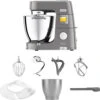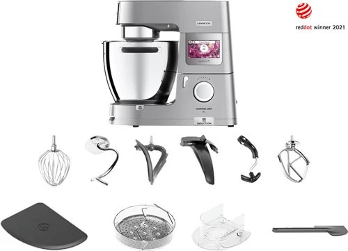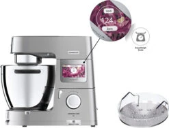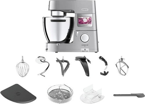 De Kenwood Cooking Chef XL KCL95.004SI gaat een stapje verder dan de keukenmachine die je normaliter gewend bent, want je bereid nu ook eten in de machine. Dankzij de inductieplaat verwarm je de kom van 20 tot 180 graden. De Kenwood World App biedt jou een tal van recepten aan die je stapsgewijs uitleggen hoe je de lekkerste recepten maakt met de keukenmachine. Je kiest een recept uit en verzendt de instructies rechtstreeks naar de machine. Om je het werk nog gemakkelijker te maken, weeg je de ingrediënten af in de kom door de geïntegreerde weegschaal. Deze werkt ook in de meegeleverde accessoires zodra je deze bevestigt. Je bedient de machine door middel van het intuïtieve touchscreen, zo bedien je de timer, temperatuur en de voorgeprogrammeerde functies.
