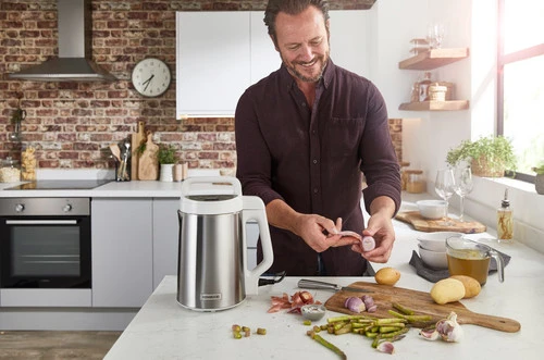 Dankzij de kookfunctie maak je van rauwe ingrediënten een warme saus of soep.