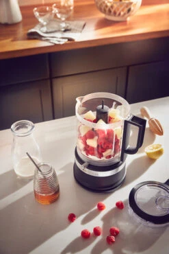 Met de KitchenAid 5KFC0516EOB Zwart hak, pureer of mix je niet alleen ingrediënten fijn, je klopt ze ook in een handomdraai luchtig. Je ontvangt namelijk naast een mes ook een klopper. Hiermee maak je eenvoudig sauzen of klop je zelfs slagroom op. De mengkom is met een inhoud van 1,2 liter groter dan dat van de meeste KitchenAid hakmolens. Hierdoor maak je ook grotere hoeveelheden in één keer, zoals een lekkere hummus voor de hele week. De hakmolen bevat 2 snelheden en een pulsestand. Zo bepaal je zelf hoe fijn of juist grof je de ingrediënten wilt hebben. Klaar met de hakmolen? De mengkom, het mes en de klopper mogen gewoon in de vaatwasmachine.