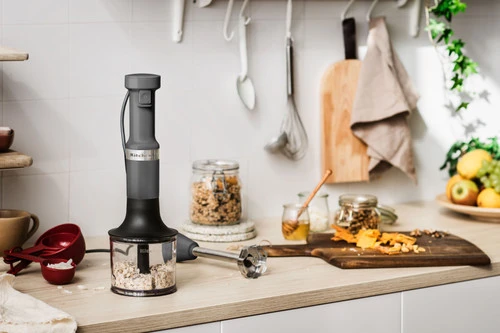 Dankzij de meegeleverde accessoires hak je ook ingrediënten fijn en klop je slagroom en eiwitten op.