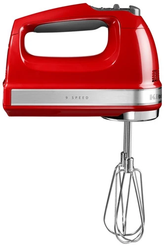 De KitchenAid 5KHM9212EER Keizerrood handmixer is met 9 snelheden en uitgebreid accessoirepakket een mixer met veel mogelijkheden. Het accessoire pakket bevat: 2x rvs klopper voor bijvoorbeeld slagroom, 1x rvs 16-draadgarde om eitjes te klutsen, 2x rvs deeghaak voor deeg en ander beslag, 1x rvs mengstaaf voor allerhande mengwerk en een katoenen beschermhoes voor de accessoires. Je klopt en mixt al dit lekkers zonder te spatten, want dankzij het soft-start systeem bouwt de mixer de snelheid langzaam op. Eenmaal op snelheid houdt de mixer de snelheid altijd gelijk, of je nou een beslag of koekjesdeeg mixt. Kortom; een veelzijdige en krachtige mixer met accessoires voor iedere bereiding.