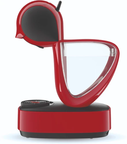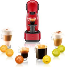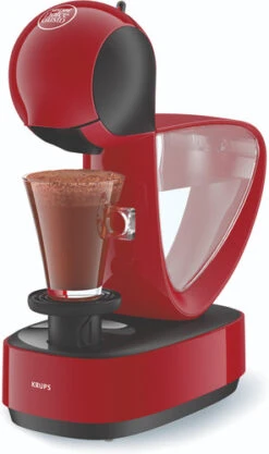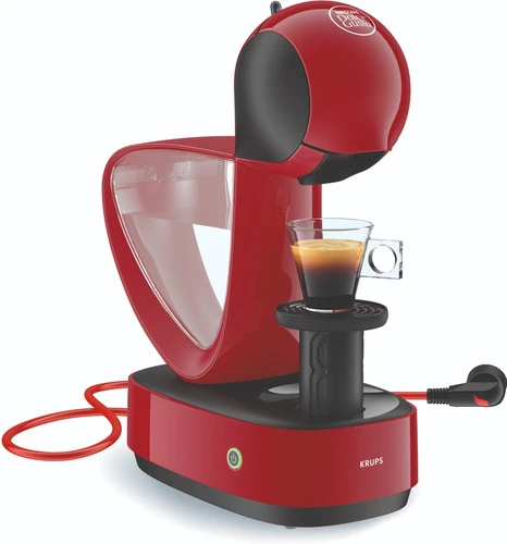 Met de Krups Dolce Gusto Infinissima KP1705 Rood zet je 8 lungo’s achter elkaar met een vol waterreservoir. Vergeleken met andere Dolce Gusto’s heeft deze koffiemachine het grootste waterreservoir van 1,2 liter. Ondanks het grote waterreservoir, is de machine niet groot van formaat. Zo neemt hij weinig plek in op je aanrecht. De koffiemachine is binnen 30 seconden op temperatuur en klaar voor gebruik. Je zet verschillende warme en koude koffiespecialiteiten. Voor een latte macchiato of cappuccino gebruik je een speciale melkpoedercups. Hiermee zet je in een handomdraai ook melkspecialiteiten of chocolademelk. De kopjeshouder verstel je in 3 hoogtes. Zo passen er verschillende kopjes onder. Dankzij de eco modus schakelt de machine vanzelf uit wanneer je deze 5 minuten niet gebruikt.