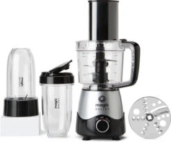 Bij deze foodprocessor zitten ook 2 blender opzetstukken, zodat je smoothies blendt.