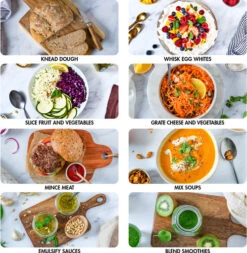 - Blenden, Hakken, Kloppen, Kneden, Mixen, Persen, Raspen, Snijden