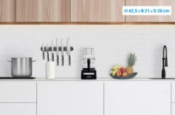 De Magimix Cuisine Systeme 4200 XL heeft 3 mengkommen met een inhoud tot 3 liter. Hierdoor maak je er grote hoeveelheden in 1 keer mee. Hakken, snijden, raspen en mixen; hij doet het allemaal stil, snel en veilig. Nadenken over de snelheid? Niet doen, want dat doet deze slimme keukenhulp voor je. De snelheid past zich automatisch aan de bereiding aan. Berg na de bereiding de accessoires op in de opbergdoos, zodat je geen ruimte hoeft te maken in je keukenlade. Magimix geeft 30 jaar garantie op de motor.