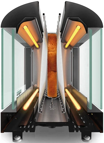 Een kijkje in de keuken. Dat krijg je met de Magimix Le Vision broodrooster. Hiermee zie je je boterham langzaam een smakelijke goudbruine kleur krijgen. Door de dubbele isolatie van de glazen zijpanelen gaat er geen warmte verloren en heb je aan het eind van het roosterprogramma krokant brood. Rooster je een stokbrood of bagel? Kies dan voor eenzijdig roosteren met de stokbroodfunctie. Op het bedieningspaneel van de Magimix Le Vision geef je niet alleen de bereiding aan, maar regel je ook de bruiningsgraad.