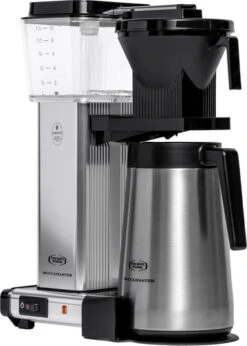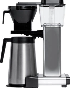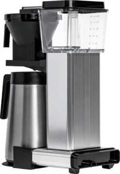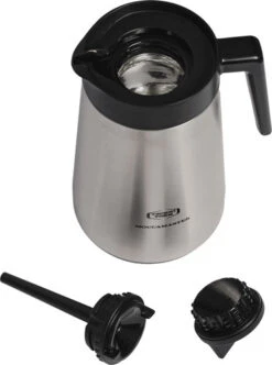 In de thermoskan blijft de koffie langer warm en neem je de kan gemakkelijk mee naar de ontbijttafel.