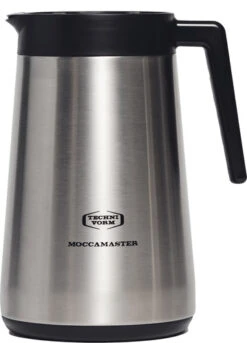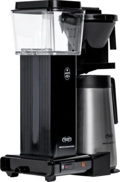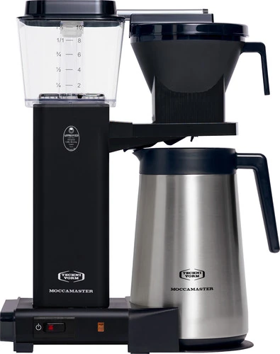 In de thermoskan blijft de koffie langer warm en neem je de kan gemakkelijk mee naar de ontbijttafel.