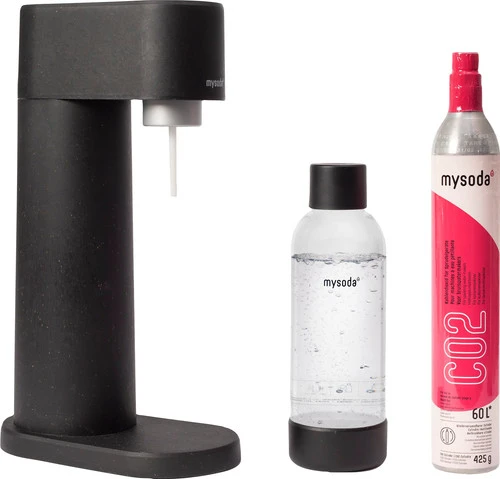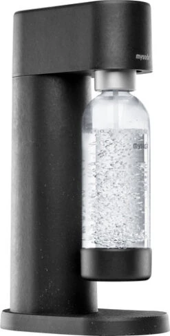 Met de Mysoda Woody Black maak je op een milieuvriendelijke manier je eigen bruiswater. De bruiswater machine is gemaakt van biocomposiet, een materiaal op houtbasis. Dat is net zo sterk als plastic, maar niet schadelijk voor het milieu. Je maakt heel eenvoudig van kraanwater je eigen bruiswater. De fles vul je met water en klik je in het apparaat, vervolgens druk je op de knop en krijg je bruiswater. De bruiswater machine heeft geen stroom nodig. Hierdoor zet je hem neer waar je wilt. De meegeleverde fles is herbruikbaar. Zo verbruik je nog minder plastic. Je krijgt er een CO2 cilinder bij. Hiermee maak je tot wel 60 liter bruiswater.
