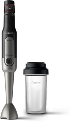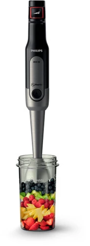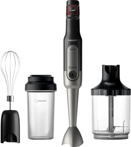 Je haalt met de Philips ProMix HR2652/90 een krachtige staafmixer in huis. De staafmixer heeft namelijk een vermogen van 800 watt. Je pureert hierdoor snel en gemakkelijk zowel harde als zachte ingrediënten. De snelheid stel je traploos in. Zo druk je de knop harder of zachter in om te mixen. Handig, want zo bouw je de snelheid langzaam op zonder dat het aanrecht vies wordt. Met de meegeleverde hakmolen hak je bijvoorbeeld een uitje fijn. De ballongarde gebruik je voor het opkloppen van slagroom en eiwitten. De meegeleverde smoothiebeker komt goed van pas wanneer je vaak onderweg smoothies drinkt. Je reinigt de losse onderdelen na gebruik in de vaatwasser.