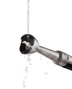Je gebruikt deze staafmixer kort voor harde ingrediënten en langer achter elkaar voor zachte ingrediënten.