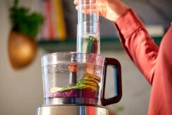 Bij deze foodprocessor zit een hakmolen, blender, citruspers én extra rasp- en snijschijf.