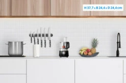 Je bergt de accessoires eenvoudig op in de mengkom van de foodprocessor.