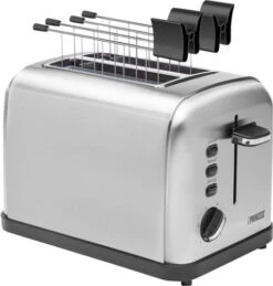 Rooster, ontdooi en verwarm eenvoudig brood met de Princess Toaster Steel Style 2. Het broodrooster is namelijk voorzien van 6 instelbare bruiningsstanden en een ontdooifunctie. Met de meegeleverde extra accessoires breid je de mogelijkheden verder uit. Zo maak je tosti’s met de tostiklemmen en verwarm je broodjes op het opwarmrek. Met de handige liftfunctie haal je zelfs de kleinste sneetjes gemakkelijk uit het broodrooster. Dankzij de uitneembare kruimellade is het schoonmaken ook een fluitje van een cent.