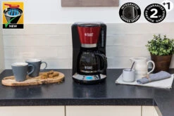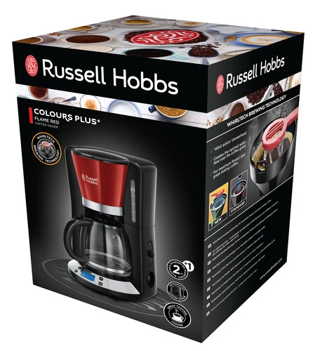 De Russell Hobbs Colours Plus Rood heeft een instelbare timer, zodat jij iedere morgen opstaat met een kan warme koffie. De avond van tevoren stel je via het display eenvoudig de tijd in waarop het koffiezetapparaat aan de slag moet gaan. Je vult het waterreservoir met precies genoeg water voor het aantal koppen koffie dat je wilt zetten. Dit staat namelijk handig aangegeven op het reservoir. De filterhouder is uitneembaar en leeg je hierdoor gemakkelijk boven de prullenbak. Vergeet je de koffiemachine uit te zetten? Dan schakelt deze na 40 minuten vanzelf weer uit.