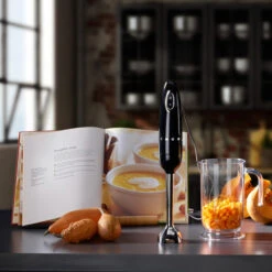 Je gebruikt deze staafmixer kort voor harde ingrediënten en langer achter elkaar voor zachte ingrediënten.