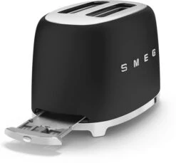 Met de SMEG TSF01BLMEU Mat Zwart broodrooster zijn je sneetjes brood in mum van tijd geroosterd. Het broodrooster heeft namelijk een hoog vermogen van 950 watt. Je kiest uit 6 verschillende standen. Zo maak je het brood zo krokant als jij wilt. Hij heeft 3 automatische programma’s waarmee je verwarmt, ontdooit of éénzijdig roostert. De laatste functie komt goed van pas wanneer je een bagel wilt maken. Het brood plaats je in de sleuven en duw je met de hendel omlaag. Wanneer de sneetjes krokant genoeg zijn, worden ze automatisch omhoog geduwd. Na gebruik maak je de kruimellade gemakkelijk schoon. De stekker berg je aan de achterkant netjes op.