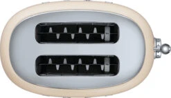 Met de SMEG TSF01CREU Creme broodrooster zijn je sneetjes brood in mum van tijd geroosterd. Het broodrooster heeft namelijk een hoog vermogen van 950 watt. Je kiest uit 6 verschillende standen. Zo maak je het brood zo krokant als jij wilt. Hij heeft 3 automatische programma’s waarmee je verwarmt, ontdooit of éénzijdig roostert. De laatste functie komt goed van pas wanneer je een bagel wilt maken. Het brood plaats je in de sleuven en duw je met de hendel omlaag. Wanneer de sneetjes krokant genoeg zijn, worden ze automatisch omhoog geduwd. Na gebruik maak je de kruimellade gemakkelijk schoon. De stekker berg je aan de achterkant netjes op.