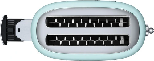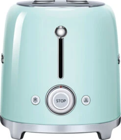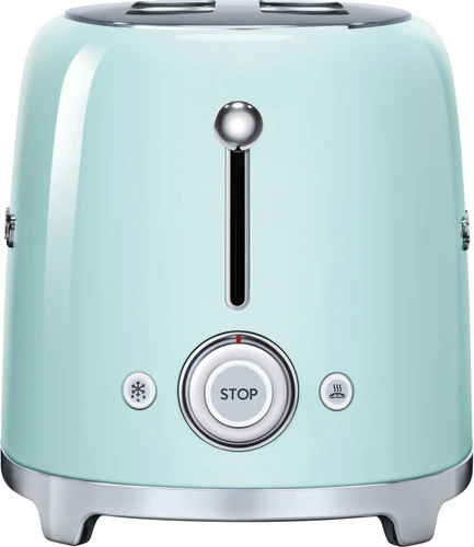 Rooster in 1 keer 4 sneden brood met de SMEG TSF02PGEU Watergroen. Deze broodrooster heeft 2 sleuven waar elk 2 sneetjes in gaan. Hoe krokant het brood wordt, bepaal je met 1 van de 6 standen. Wil je croissants verwarmen of brood uit de vriezer eten? Met de verwarmfunctie en de ontdooifunctie verwarm en ontdooi je het brood, zonder dat het krokant wordt. Deze Smeg broodrooster bedien je gemakkelijk door de hendel omlaag te duwen. Zodra de sneetjes krokant zijn, worden ze automatisch omhoog geduwd.
