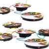 Met de Solis Combi Grill 3-in-1 bak, grill en fondue je met 8 personen tegelijk met maar één apparaat. Leuk, want zo is er voor ieder wat wils. Kook bijvoorbeeld stukjes kip gaar in bouillon terwijl je op de grillplaat gamba’s en groenten bakt. In de raclettepannetjes maak je pannenkoeken en omeletten of bak je ingrediënten gaar. De temperatuur regel je met de handige draaiknop. De rand rondom de knop kleurt groen wanneer de plaat of fonduepan op temperatuur is. Even klaar met de pannetjes, maar nog niet uitgefonduet? Zet de pannetjes dan onderin in de koude zone. Zo koeken de pannetjes niet aan en pak je ze er gemakkelijk weer bij.