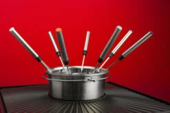 Met de meegeleverde fonduepan, fondue je tegelijkertijd tijdens het gourmetten.