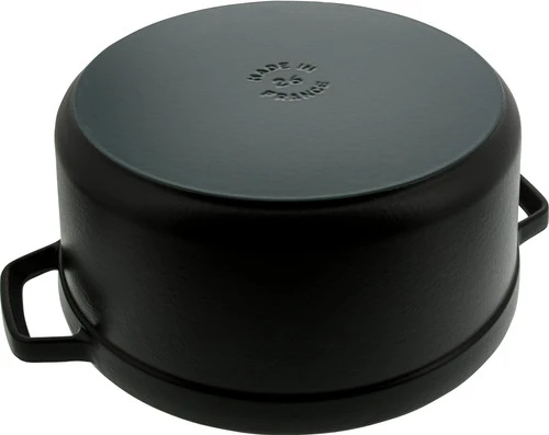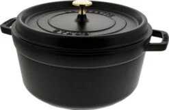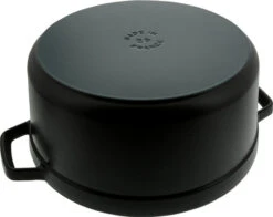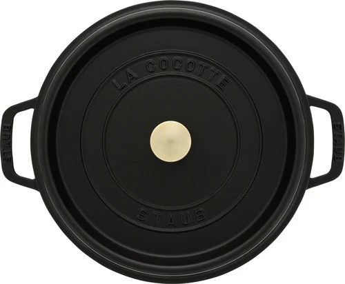 Met de Staub Ronde Stoof-/Braadpan 26 cm Zwart haal je een pronkstuk in huis. Je gebruikt de pan van geëmailleerd gietijzer voor het aanbraden, bakken, stoven en karameliseren van ingrediënten. Het gietijzer verspreidt de warmte geleidelijk en gelijkmatig en houdt deze goed vast. Als de pan eenmaal warm is, zet je het vuur laag. Zo suddert je gerecht langzaam gaar en bespaar je tegelijkertijd energie. De platte, zware deksel is voorzien van nopjes over de gehele binnenzijde. Dit druppelsysteem zorgt er in combinatie met het condensatieproces voor dat de inhoud van de Staub braadpan continu besprenkeld wordt. Op deze manier suddert het gerecht gelijkmatig gaar terwijl er nauwelijks vocht ontsnapt. Wil je het condensatieproces versnellen? Leg dan ijsbokjes op de deksel tijden het sudderen.