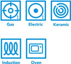 De kunststoffen handgrepen zijn minder duurzaam dan rvs en kunnen smelten.