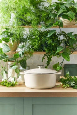 Gietijzer geleidt warmte erg goed, hierdoor is de pan zeer geschikt voor het maken van stoofpotten.