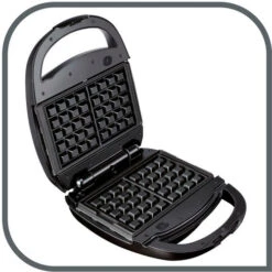 Met dit tosti ijzer maak je tosti’s en wafels, dankzij de meegeleverde bakplaten.